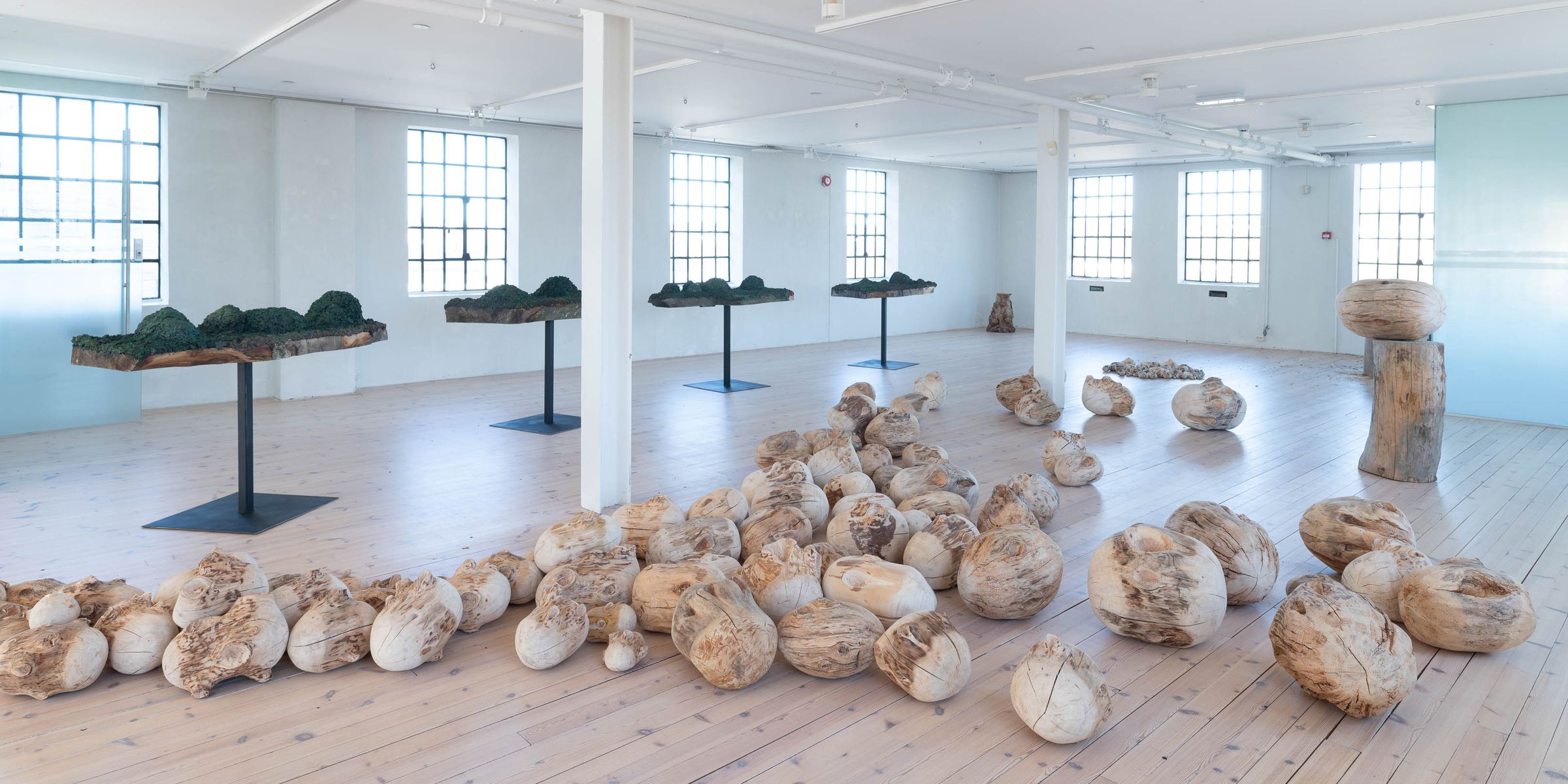Utover disse to diagonale forlÞpene i rommet, stÄr noen vanlige trestammer bak i rommet, som for Ä skape en kontrast til de mest manipulerte verkene i sentrum av utstillingen. Dette bildet brytes imidlertid av én av stammene, som er helt uthulet. Stammen viser et forunderlig mÞnster av knaster og utvekster pÄ treets overflate, og en helt fin innside, som er blitt slipt glatt av kunstneren.