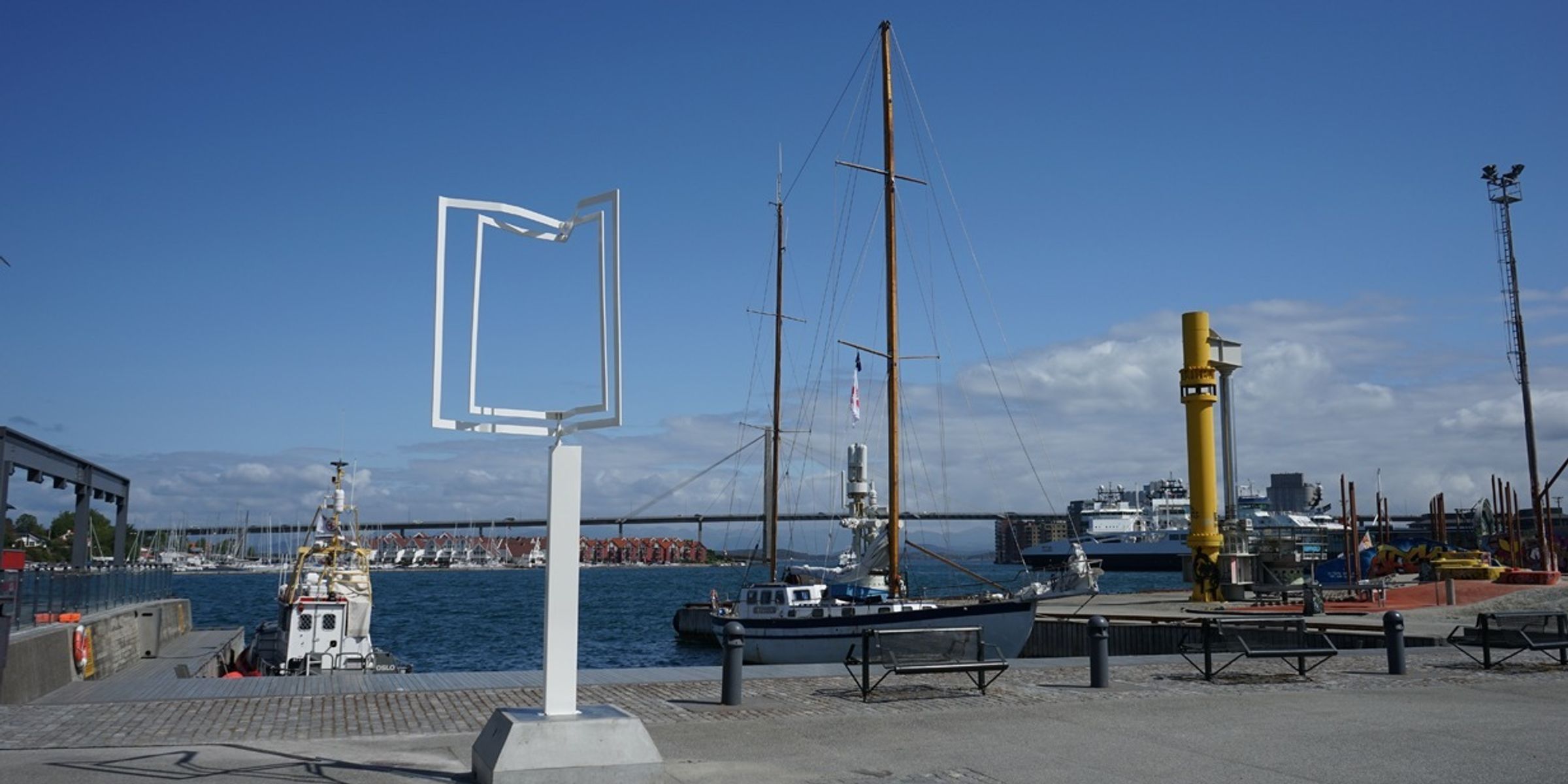 There is a sculpture on view in Stavanger’s harbor this summer that has a very unusual genesis. It is the mythical child of art and science, and is appropriately titled Dans! (Dance! in English). The sculpture, in two parts, twirls around an axis, framing the horizon and itself in a slow and steady movement. On the other side of the Norwegian Petroleum Museum lies another dancer, a vertical-axis wind turbine. The two are connected, as one powers the other, and there is a strange echo between the beauty of Else Leirvik’s recently unveiled sculptural work and the sleek engineering of the turbine.