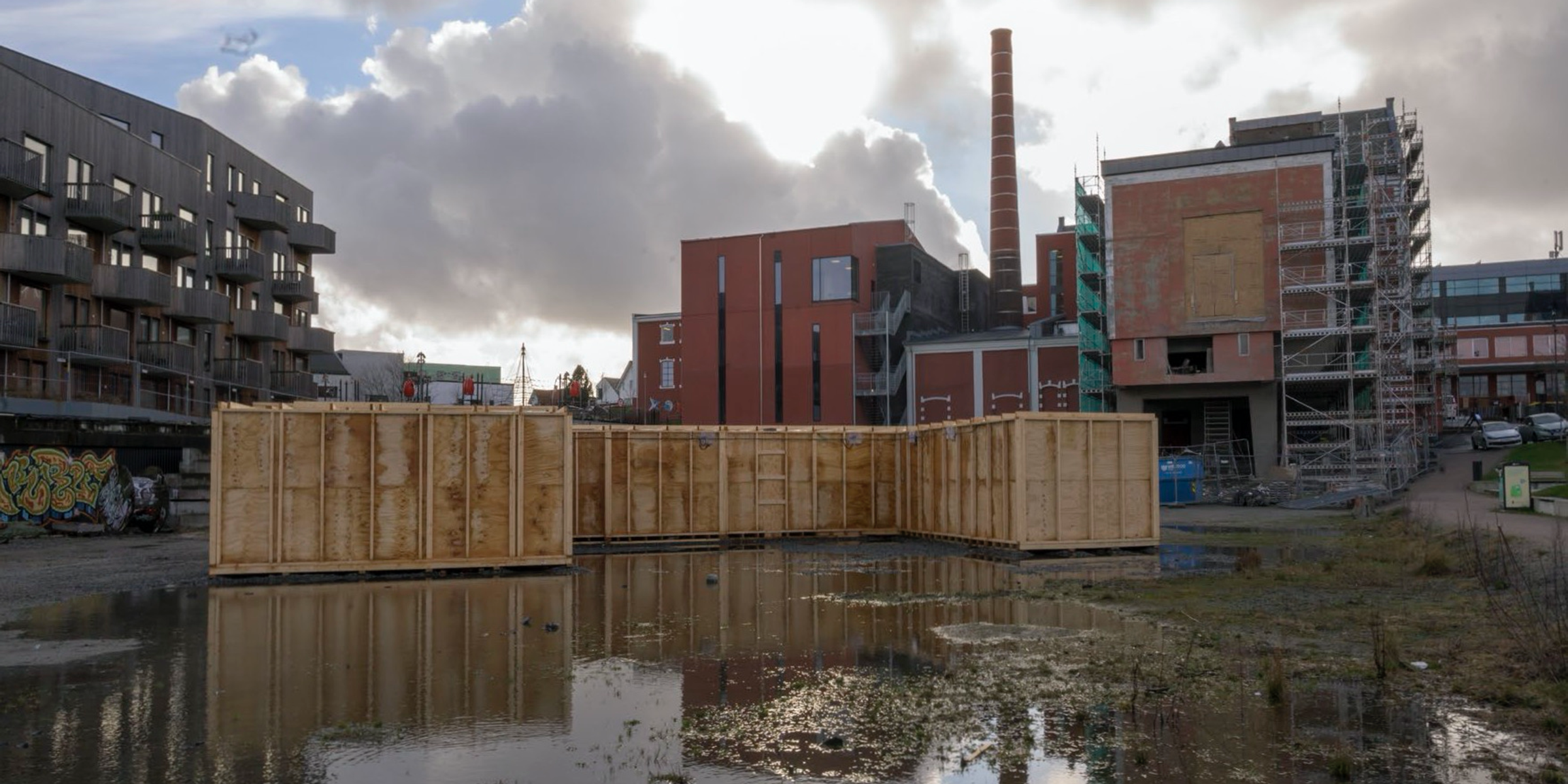 In the peculiar, virus-plagued spring of 2020, a complex art project unfolded at two different locations in Stavanger. A bare-bones building was erected on site in front of the Tou Kulturhus in the Eastern district while the skeleton of another structure was built inside the second floor of Rogaland Kunstsenter in the center of the city. Both were designed and built in wood, and identical in shape and construction – one outside in the open air, the other inside an art institution. The former building was constructed on a development lot, popularly referred to as 'the waiting lot', because it is, like so many other areas around a city, waiting for a clarification of its purpose. The waiting lot in Østre bydel is close to the sea, squeezed between a number of newly built housing complexes, a park, and an old beer factory that has become a cultural centre. It is an area that has been through a fairly standard gentrification process, ie, the development and beautification of a previously dilapidated industrial urban area. The waiting lot, which is privately owned, is awaiting an answer as to whether it will be the foundation for another housing complex or whether it will be allowed to become something else. An urban park, for example, or an activity area for the community, an area where the general public can meet one another and spend time outdoors.