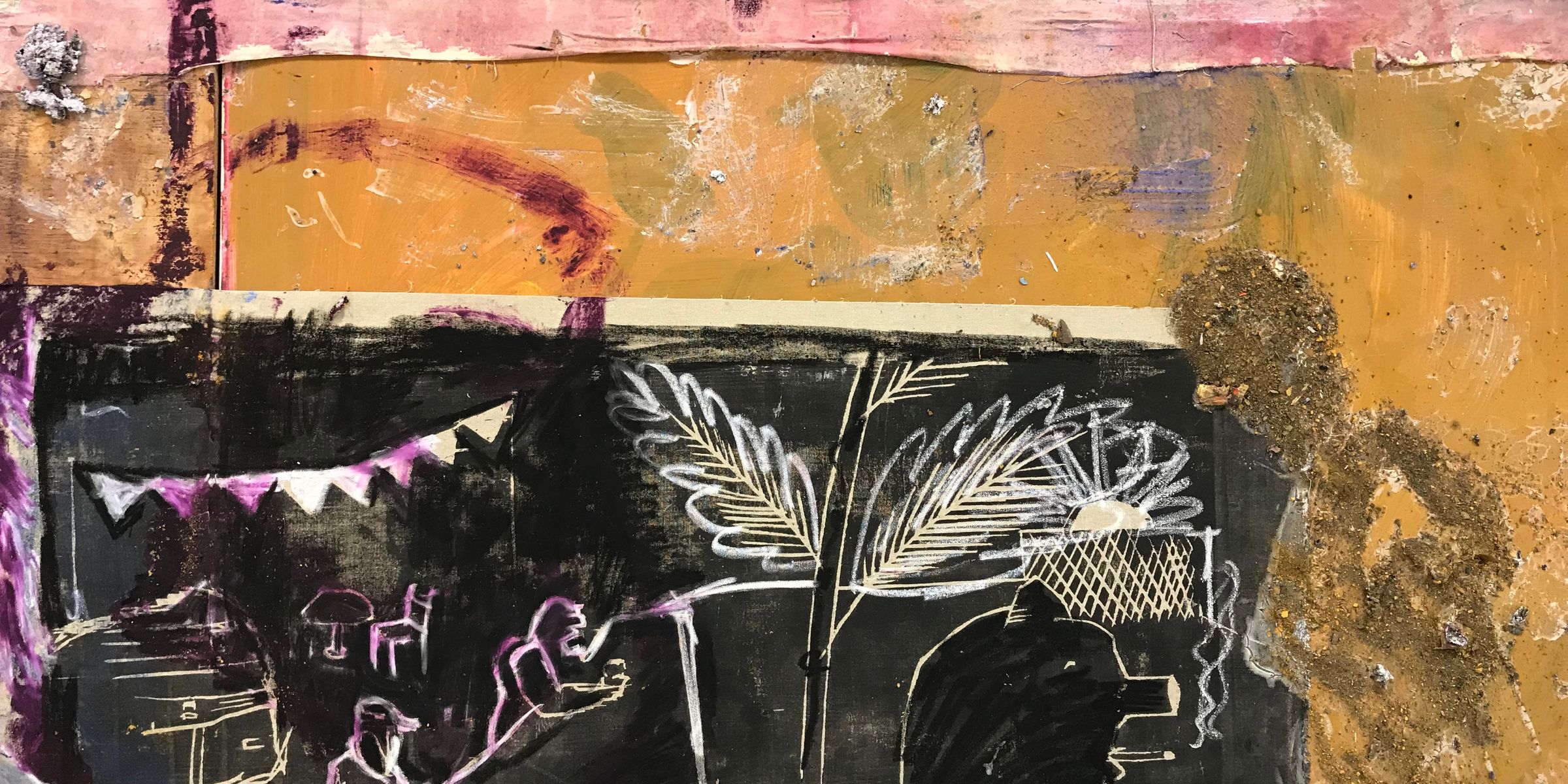 Variasjonen bÄde i materialer og teknikk som brukes i denne monumentale collagen trekker oppmerksomheten mot kunstnerens lek og utforskning av maleriets og materialenes muligheter. En lek med alvorlige undertoner som er utfÞrt pÄ en tilsynelatende tilfeldig mÄte bestÄende av bÄde abstraherte formers uttrykksfullhet og figurative tegningers fortellingsinvitasjon. Men hva er det kunstneren forsÞker Ä fortelle?