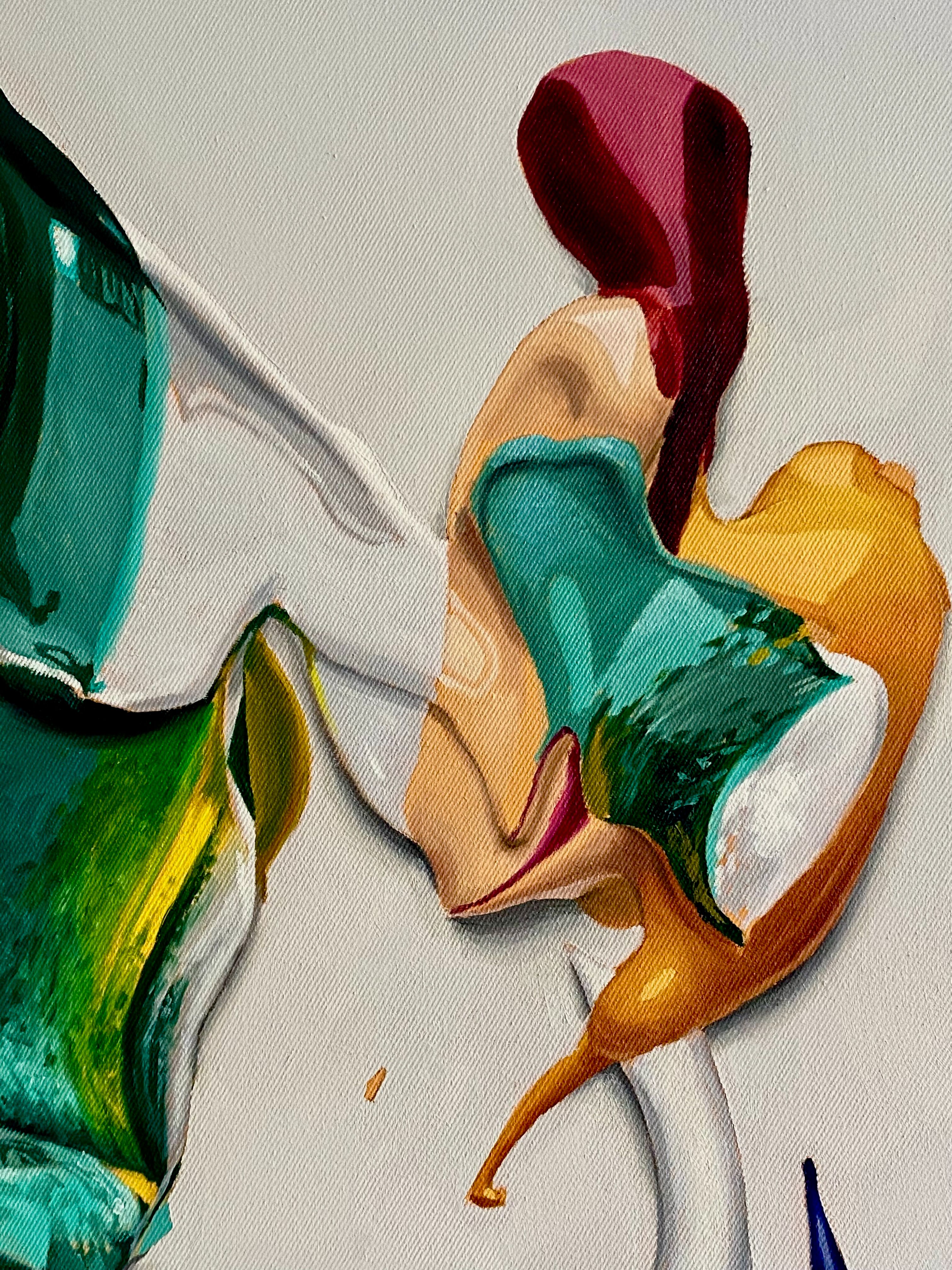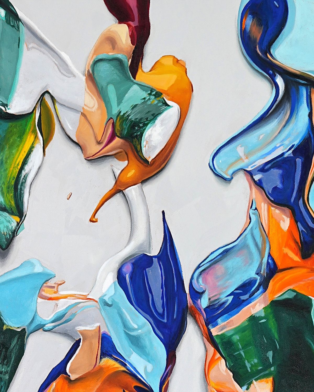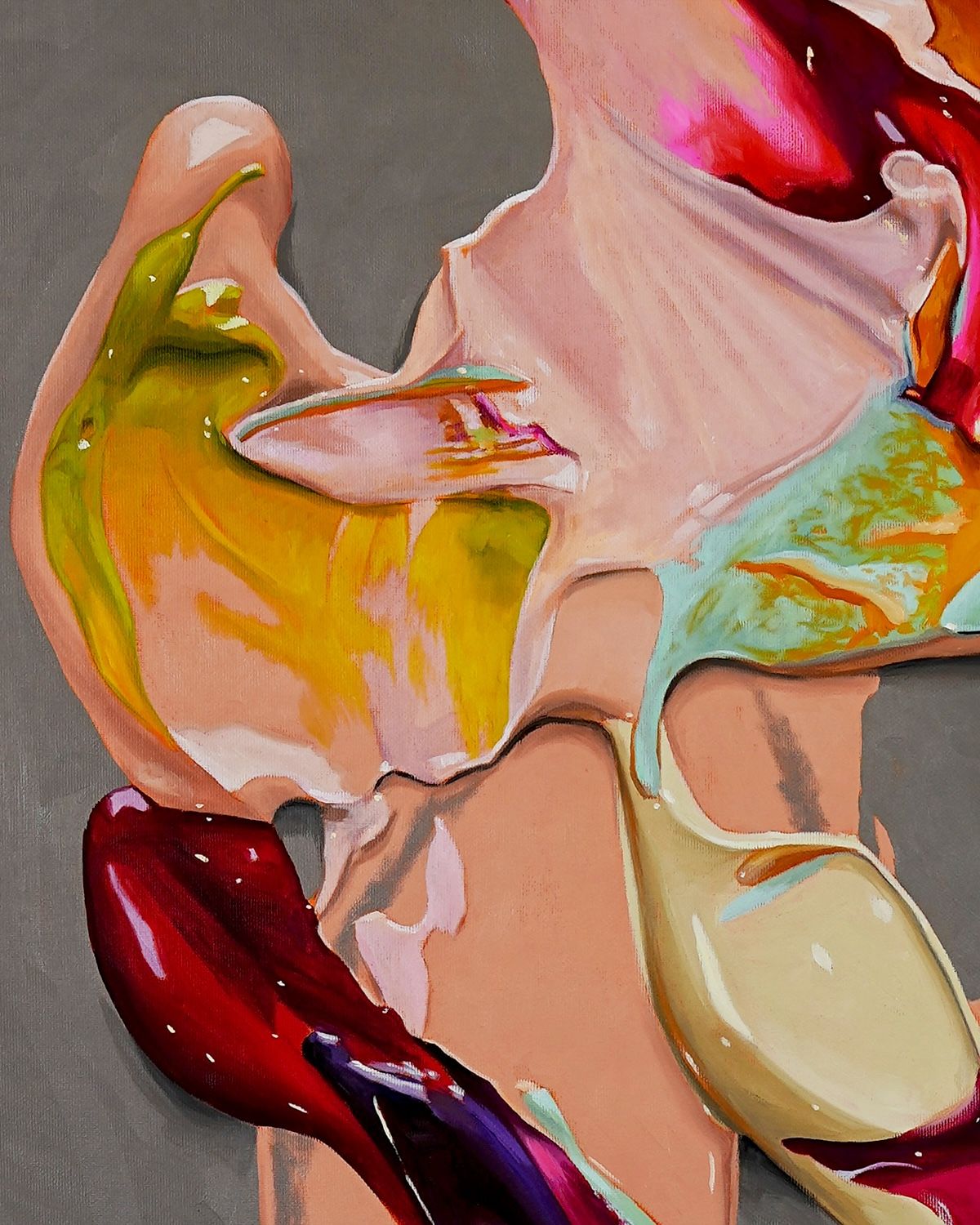 A commonality between them that is not as immediately apparent as their shared subject matter is that he lights them from above. This is a reference to classical painting tradition and museum display, where the light, as if divine, is cast upon the painted subjects and the painting itself, from above. Once the photographs have been taken, Varpe begins his search within them for qualities that motivate their meticulous reproduction on canvas. Every painting comes about in this way.