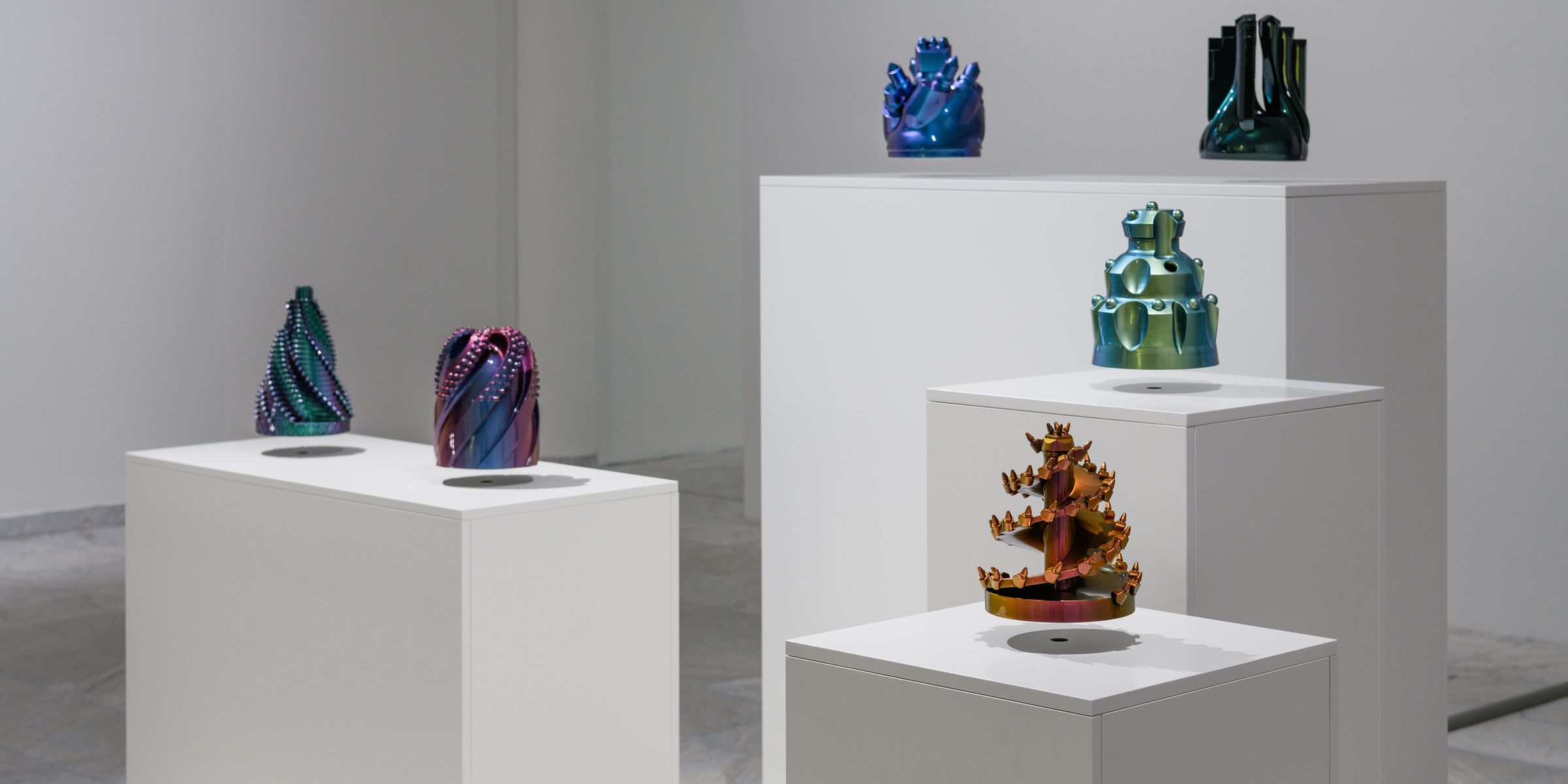 SjĂŠldent er jeg blevet sĂ„ forvirret af et vĂŠrk som Monira Al Qadiris OR-BIT 1-6 (2016 â 2018). Her fĂ„r petromodernitetens nĂŠrmest okkulte magiske krĂŠfter frit spil. Det er fĂžrst nĂ„r museumsvagten advarer mig mod at gĂ„ for tĂŠt pĂ„ at jeg opdager at skulpturerne faktisk svĂŠver over podierne. De smĂ„ eksplosioner i mit hoved fortsĂŠtter faktisk nu mange dage efter at jeg besĂžgte udstillingen nĂ„r jeg tĂŠnker over hvad det var jeg sĂ„. Plastikrekonstruktioner af borekerner er malet med iriserende maling som minder om de regnbueagtige farver som olie skaber pĂ„ vandoverflader. Borekernemodellerne er vendt pĂ„ hovedet og svĂŠver via stĂŠrke magneter som ville de bore hul i himlen i stedet for i undergrunden. Og det er faktisk hvad de gĂžr, borer hul i ozonlaget over os. I en performanceforelĂŠsning omgjort til tekst i antologien Experiences of Oil skriver Al Qadiri om olien, denne fossilgjorte planktonsuppe fra juratiden som har lagret kraft fra solen. Det er et effektfuldt stykke historiefortĂŠlling som desvĂŠrre virker en smule bortgemt i antologien, nĂŠsten ulĂŠselig med sort skrift pĂ„ violet papir.
