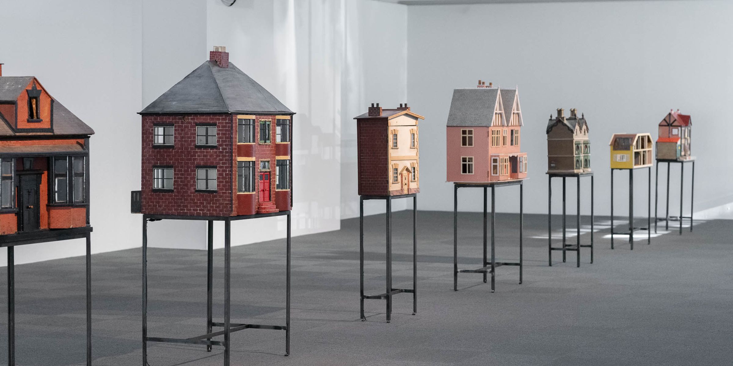 Initially, this project began as an extension of the Disgrace series. We were interested in the fact that feminist discourse has situated the home as a site of women's oppression; a place where they are expected to perform domestic, emotional, reproductive and sexual labour for free, subordinate to their fathers or husbands. The home is a space where gender and gendered roles are both invented and reproduced. On the other hand, for early feminists and the women who were first to be enfranchised with the vote of the propertied class, the home was a signifier of wealth, power and mobility that allowed these women to exercise soft political power through social gatherings. Dollhouses were originally intended for display and were often replicas of the ownerâs home. In play, they trained young women about the upkeep of a house. The dollhouses also represent microcosms of British class. Class is made visible through the arrangement of rooms; kitchens, sculleries and laundries in the basement, decadent living rooms in the floors above, and rudimentary staff bedrooms in the eaves. We started collecting dollhouses that corresponded with the time periods displayed in the Disgrace etchings; a house from almost every decade starting in the 1890âs to the present day, representing the changes in domestic architectural styles throughout these periods. When we began working with Owen Pratt on the sound piece, the work really opened up for us. We began to consider how domestic spaces are designed to engineer familiar gender roles, but in reality, they become containers of a varied multiplicity of identities, many of which resist the burden of the domestic. Often, people have an emotional response to this work; the sound evokes a lot of feelings and people are sometimes reminded of the home they grew up in. We were interested in the fact that for some, the home is a site of love and safety, whilst for others, it is a site of danger and violence. We wanted to make a work that could contain all these emotional realities whilst also providing space for optimism and dreams.