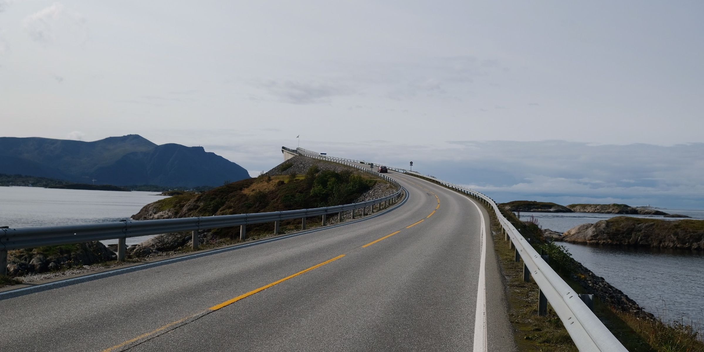 En av grunntankene i prosjektet var at jeg skulle ta meg fra Kristiansund (eller fra Atlanterhavstunellen) til Molde for egen maskin. Jeg ble forført av bildene jeg så fra Atlanterhavsveien, og broene som bukter seg som en slange langs kysten. Jeg så for meg en vandring langs kysten der hav møter land med all sin kraft. Jeg fikk godt vær – ikke en krusning på havet. Men veien er tilrettelagt for biler – strake veien fra bygd til bygd. Veiene gikk tvers over myrene, langt fra både hav og fjell. Ingen bølgebrus, bare motordur. Jeg hadde sett for meg at havet som møter land med varierende intensitet, og broene som fører deg fra en fast grunn til den neste skulle fore meg med filosofiske tanker om kontrastene i livet og dets overgangsfaser – at jeg kunne ta så feil! Det meste av tiden var jeg tankeløs.
