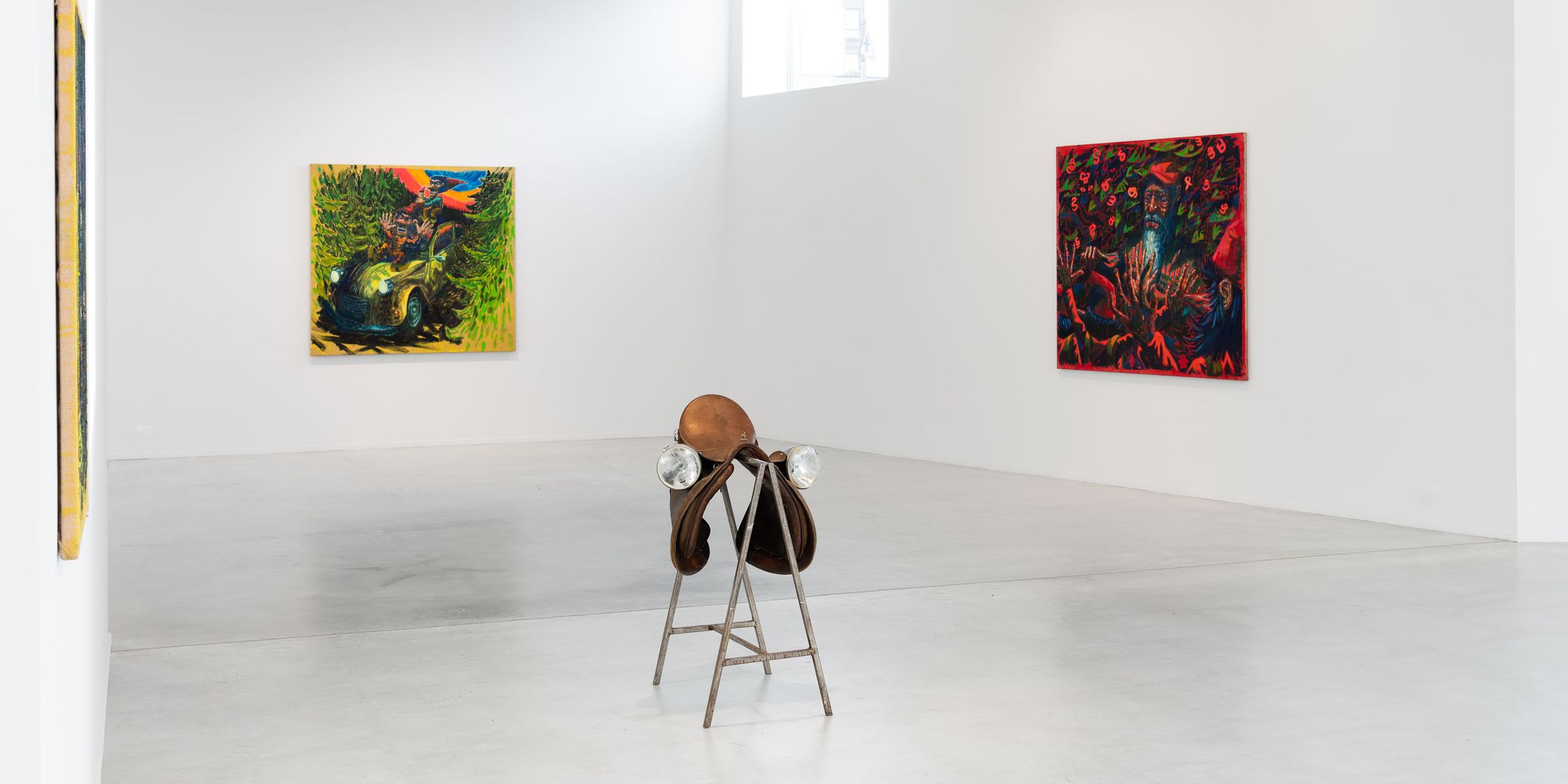 Verket Fjøsnisse (2024) er plassert på veggen slik at den leende nissen peker på den eneste skulpturen i utstillingen, Hybrid (2024). Skulpturen er laget i samarbeid med Anna Sofie Mathiasen, og består blant annet av en hestesal, 2CV-bildeler, geite- og hestehår og nissesko av tre. Skulpturen fungerer som en tredimensjonal oppsummering av utstillingens tematikk og sentrale elementer fra resten av verkene, og nikker på uanstrengt vis også til Marcel Duchamps readymades Sykkelhjul (1913) og Fontene (1917).