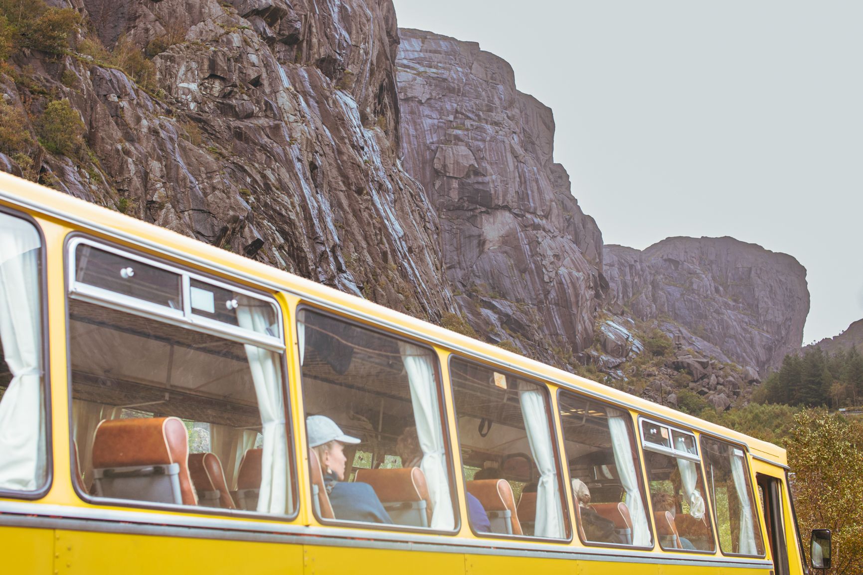 The yellow bus during a stop at Jøssingfjord. Photo: Carlos H. Juica