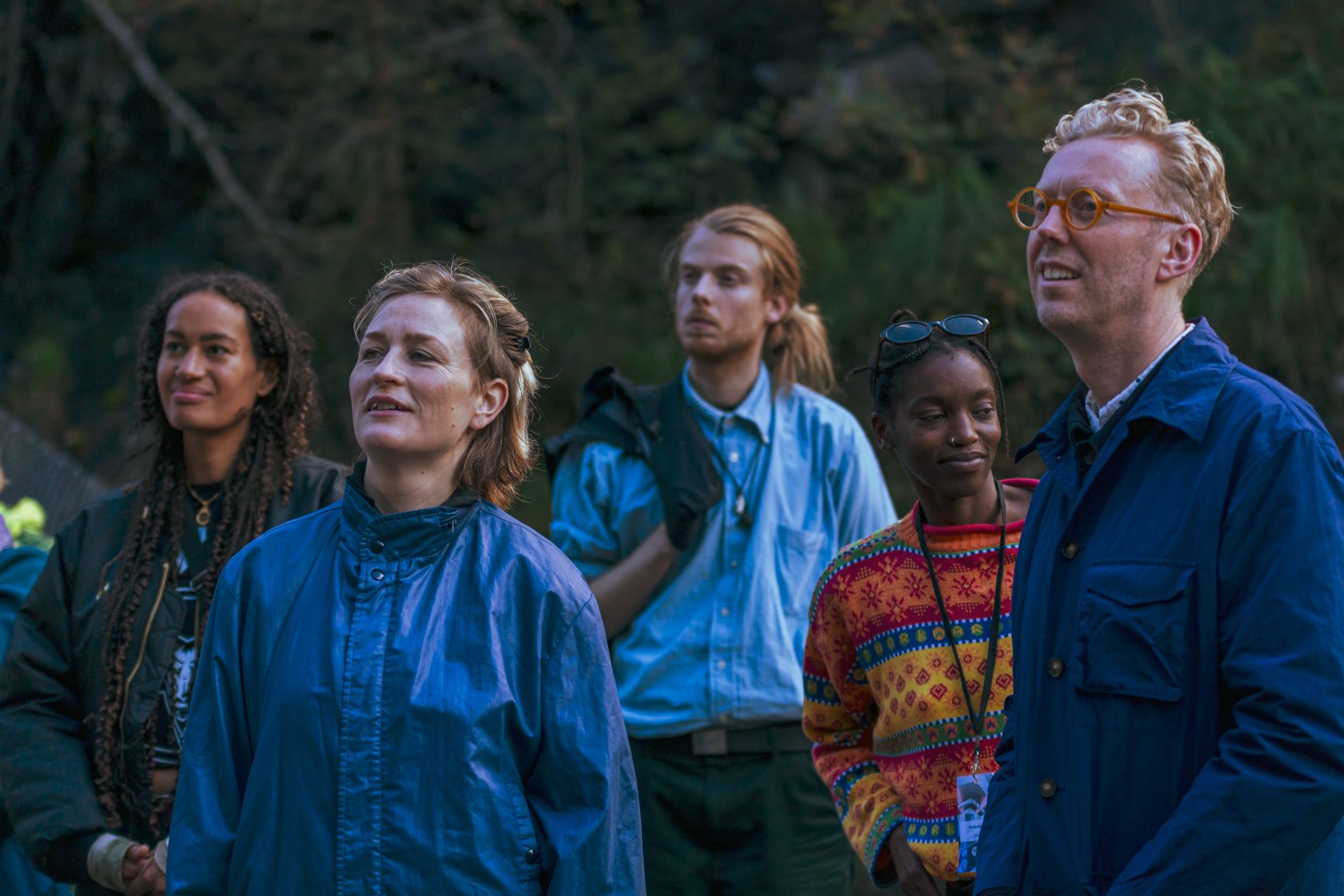 Participants during walk close to Velferden. From left: Artist Linda Lamignan, artist and Velferden founder Maiken Stene, artist Quin Scholten, artist Khadija Cecilie Niang and artist and Coast Contemporary organiser Kenneth Varpe. Photo: Carlos H. Juica