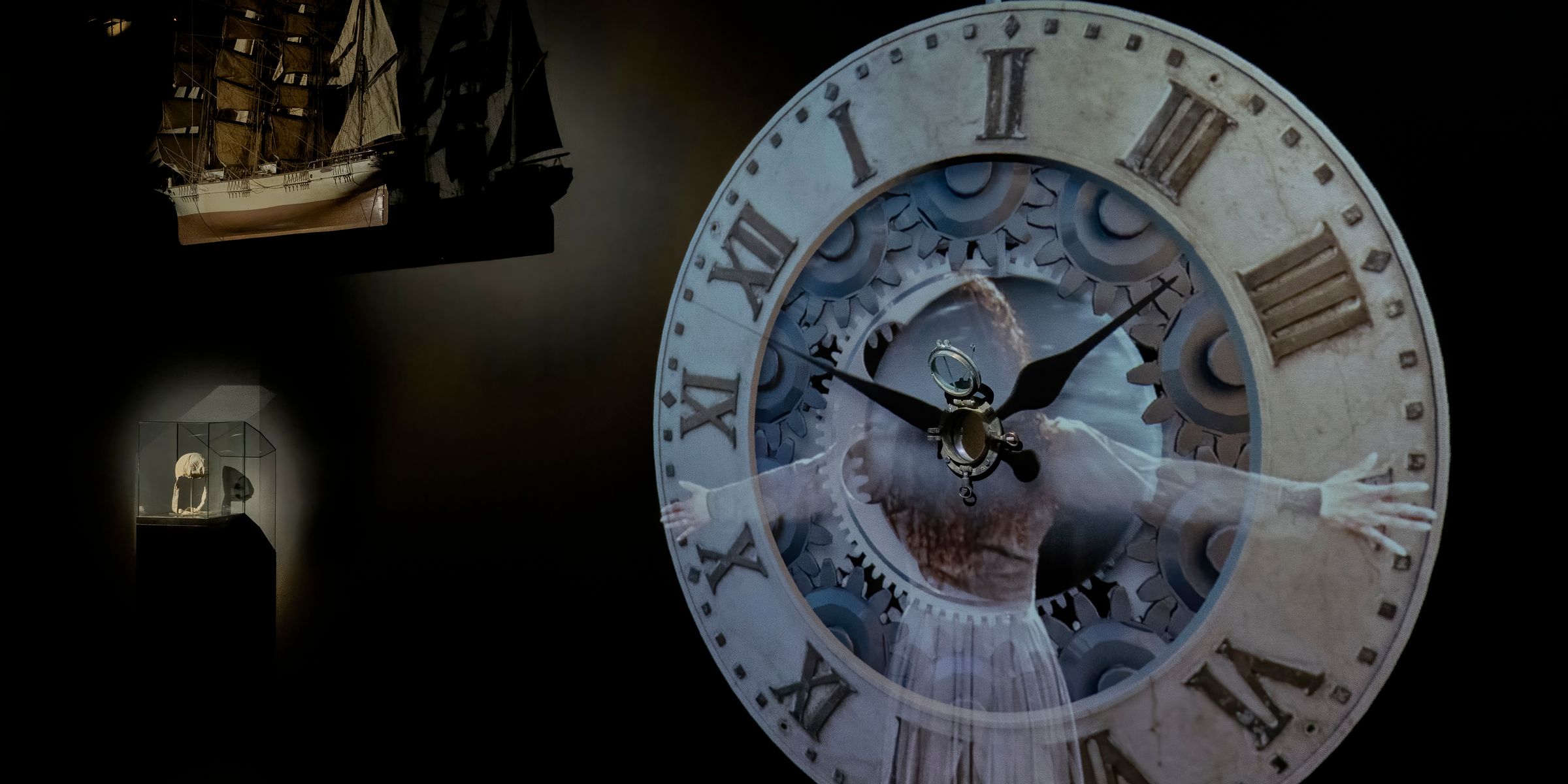 Derimot blir jeg fascinert av kapittelet om 1800-tallet. Her går man inn i et slags kuriositetskabinett som henter inspirasjon fra surrealisme (selv om denne kunstretningen kom litt senere). Projeksjoner fyller rommet sammen med gjenstander fra den gryende industrialiseringen. I løpet av dette århundret skjedde en rekke infrastrukturelle utviklinger, og dampmaskinen, telegrafen og elektrisiteten ble oppfunnet. Stavanger vokste dramatisk, fra 2500 til 30 000 innbyggere. Arne Nøst har sammen med Reidar Richardsen skapt en tolkning av denne utviklingen, der mennesker i datidens klær opptrer i scener som viser tidens nye ånd. På en snedig måte er et speil plassert på gulvet, slik at den omvendte projeksjonen av mennesker på veggen passer inn i speilbildet. Et stort ur tikker og minner om at tiden i økende grad måles i penger – kapitalismens tidsalder er kommet.