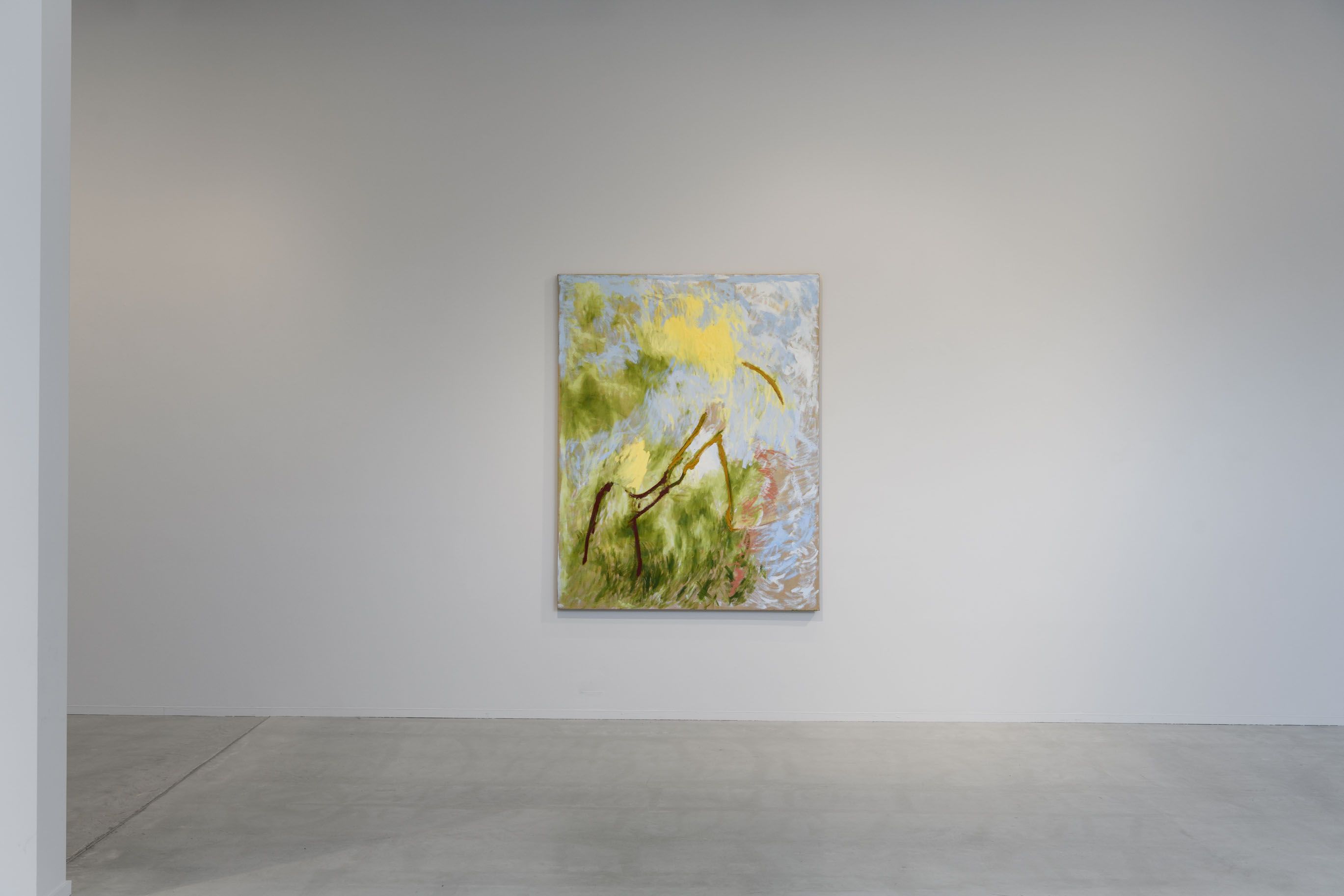 Den dagen jeg først besøker utstillingen, ligger galleriet badet i sollys etter en lang, mørk og uvanlig kald vinter. Det er umulig å ikke la seg påvirke. Lyset som flommer inn i den minimalistiske, kubisk formede salen, med sine for anledningen snøhvite vegger, forsterker malerienes indre glød, og spørsmålet melder seg: Er det bildene som bærer håpet, eller er det betrakterens situasjon som legger dette til? Kanskje er svaret begge deler. For i flere av de nevnte arbeidene finnes en dobbelthet – en melankoli og en spirende vitalitet side om side. De rommer en ny vår, og med det følger også påminnelsen om det forgjengelige ved livet. Det organiske som spirer alltid bærer med seg forfall. (Referansen til livets evige kretsløp ligger også i tittelen Eleanor, kunstnerens farmor.) Det er nettopp i dette spennet, mellom det meditative og det energiske, mellom lys og mørke, at utstillingen finner sin styrke.