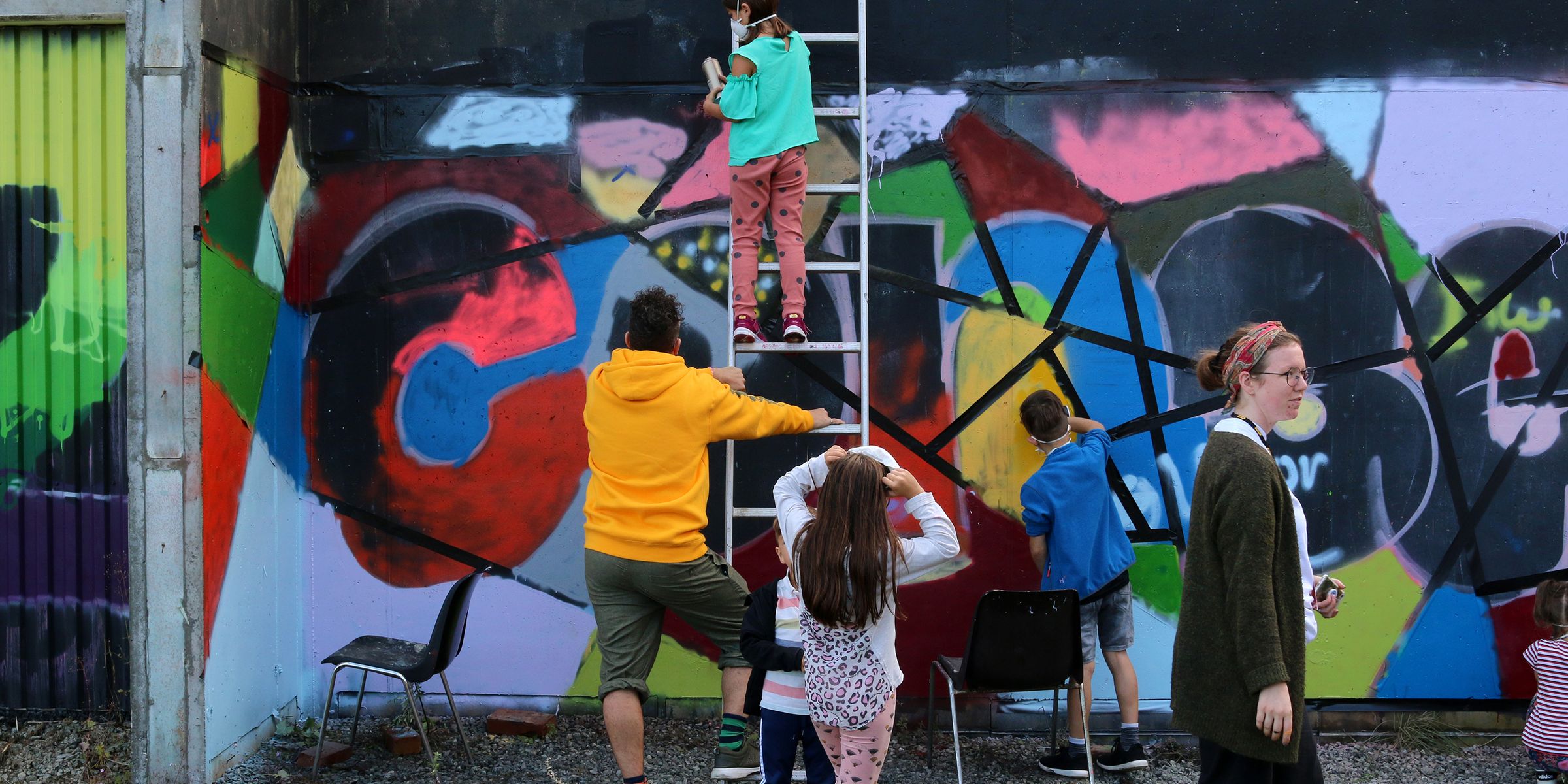 New visibility, via Instagram and other image-based social media platforms, has helped expand the repertoire of street artists, but also made for repetition and cliché. Publics expect to interact with pieces, and many are made specifically to be photographed with, like the hash-taggable “angel wings” that have popped up in dozens of cities. NuArt doesn’t trade in works like this, but some themes will seem familiar, if only because of certain conventions in the street art form. “Beholders,”a work by the Spanish artist Jofre Oliveras on Støperigata, is itself an acerbic comment on the passivity of this Pinterest-collecting culture: the mural shows a woman in a sundown skirt and jelly sandals photographing a painting in a fancy frame, it depicts a migrant-laden boat on the Medditerranean. The tableau is especially well executed, from the high polish of the floor it’s clear that she’s standing in a gallery space or art fair, taking in the flight of migrants for a minute but ready to move on soon. Everyone’s indicted: the painter benefiting from a work on the crises, the woman excited to share the work on her feed, and us the passive viewers of the entire scene. But there’s something that feels a little too clever about the whole thing. Like Banksy, who also uses a classic frame as a visual device in many works, Oliveras ties up all the visual loose ends, but, in so doing, he leaves us with little emotional breathing room and scarce outlets for productively rethinking or acting on the migrant crisis in Europe. When I passed the work in a walking tour all of the participants seemed doomed to repeat the cycle, whipping out their phones to take photos of the photographer lady in her pink dress.