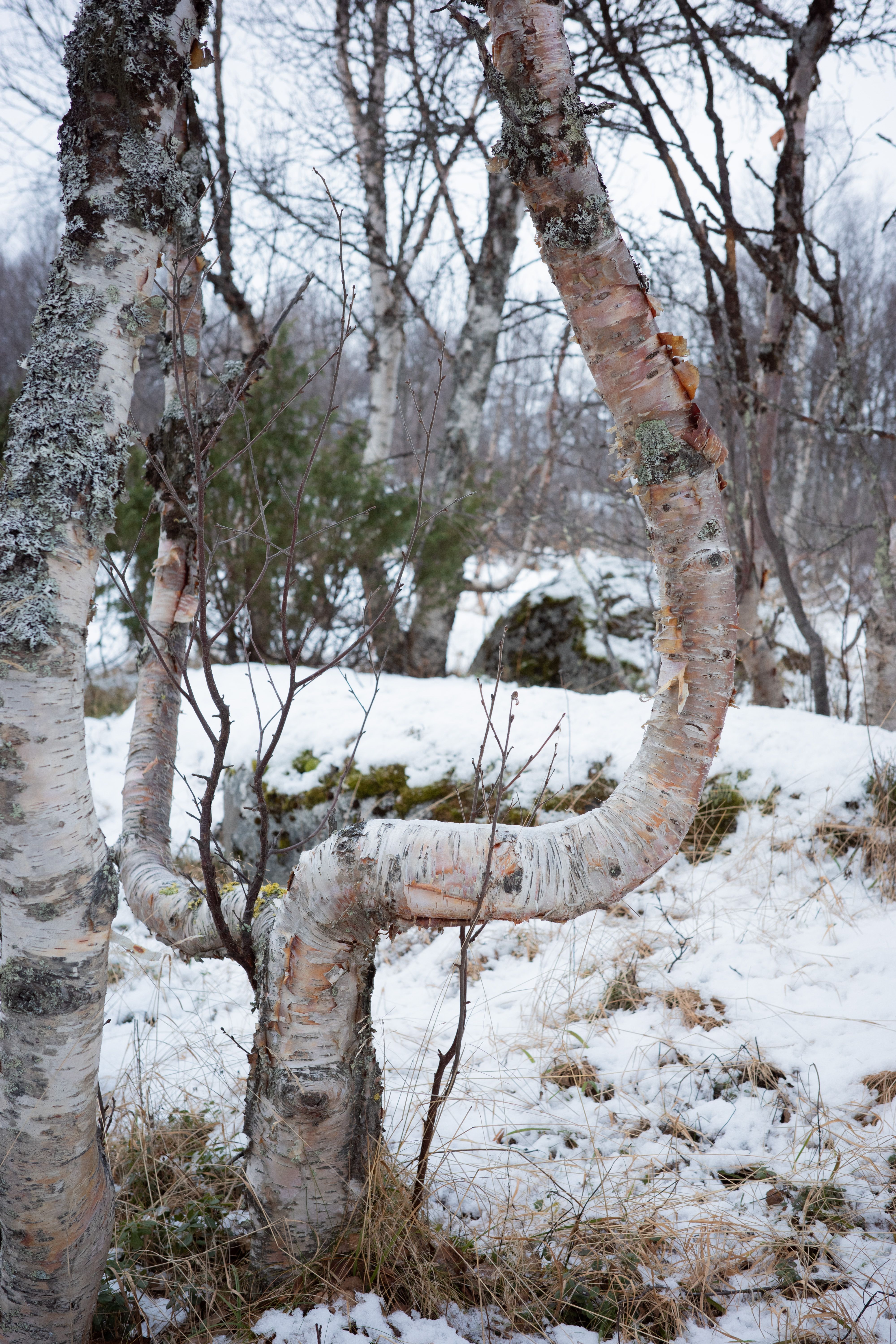 Sort of a studio activity. Skiing and looking at the wild mountain birch shapes in the mountains. I find it a very nice exercise to look for extraordinary sculptural forms in them.