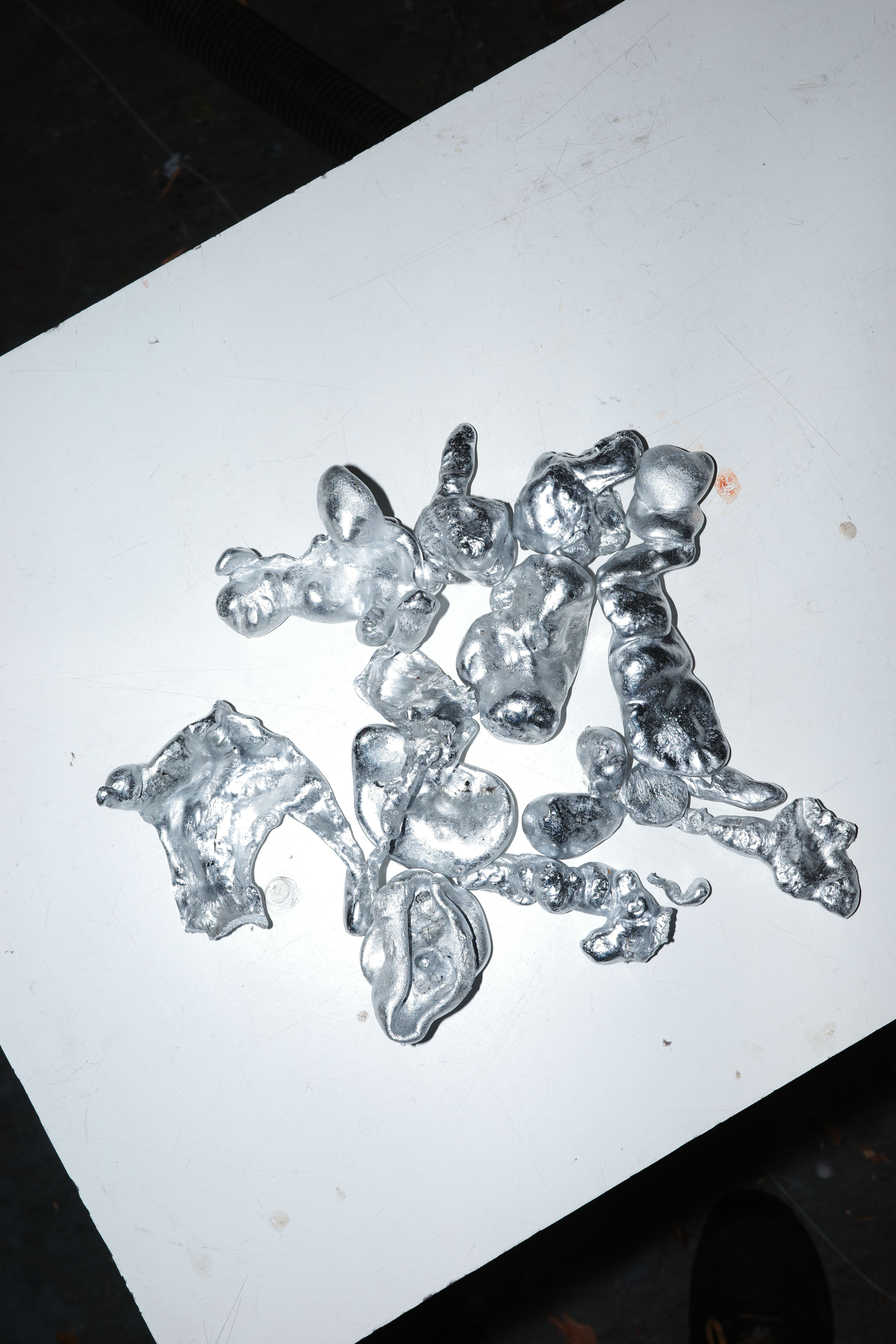These are some of the aluminium castings I made today. It was an experiment that led to some free forms. The forms themselves were maybe too loose, but still a fascinating way to generate completely free shapes. I should scale up the experiment.