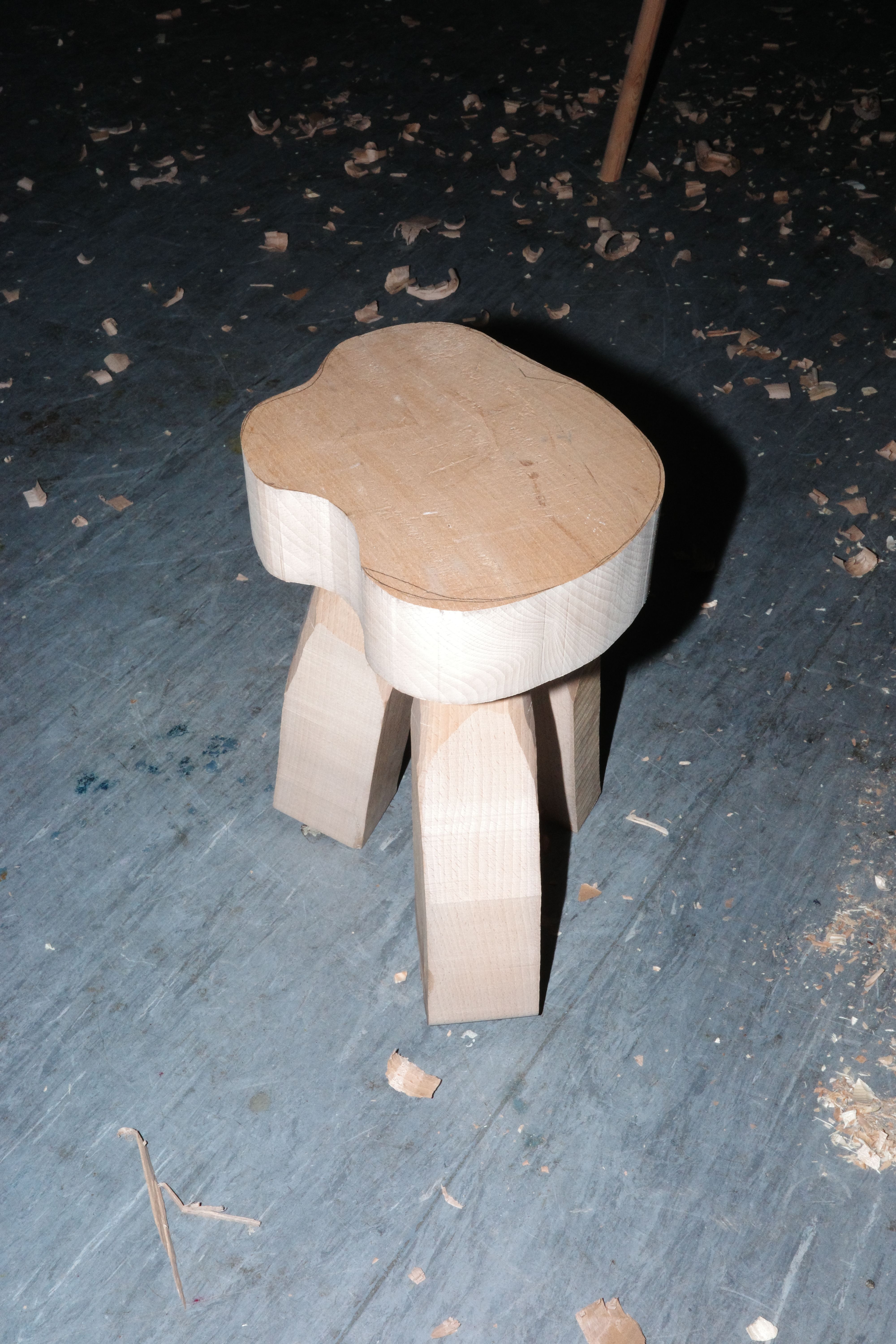 I tried making this step stool, as I am considering using the step stool as a starting point for a sculpture series that explores the format in a very sculptural way. I like the speed of it. Is it maybe one of the smallest pieces of furniture? I am using a tenon cutter to make very simple joints for the legs to go into the top.