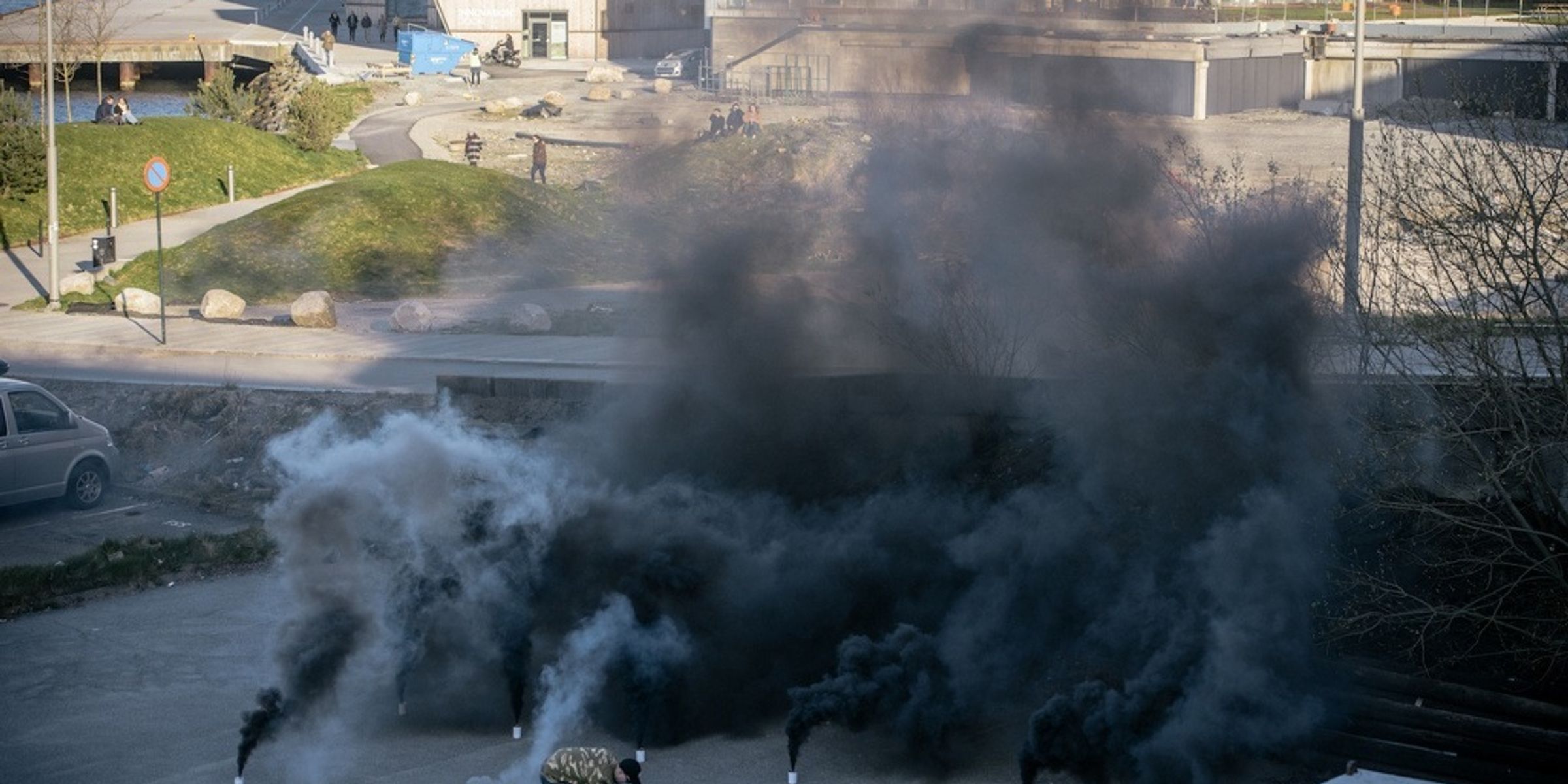 I forkant av Klas Erikssons performance «Oilers in a Bottle» ble jeg fortalt at 30 rÞykbomber, av sorten fotballsupportere bruker pÄ fotballkamper, skulle gÄ av og at rÞyken kom til Ä velte innover oppmÞtte ved Tou Scene. En mur av sort rÞyk bygget seg opp, men skuffelsen var stor da den, i stedet for Ä velte innover publikum, lÞste seg opp og forduftet. Det hele var over pÄ noen minutter, og minnet mer om et dÄrlig sankthansbÄl enn en performance.